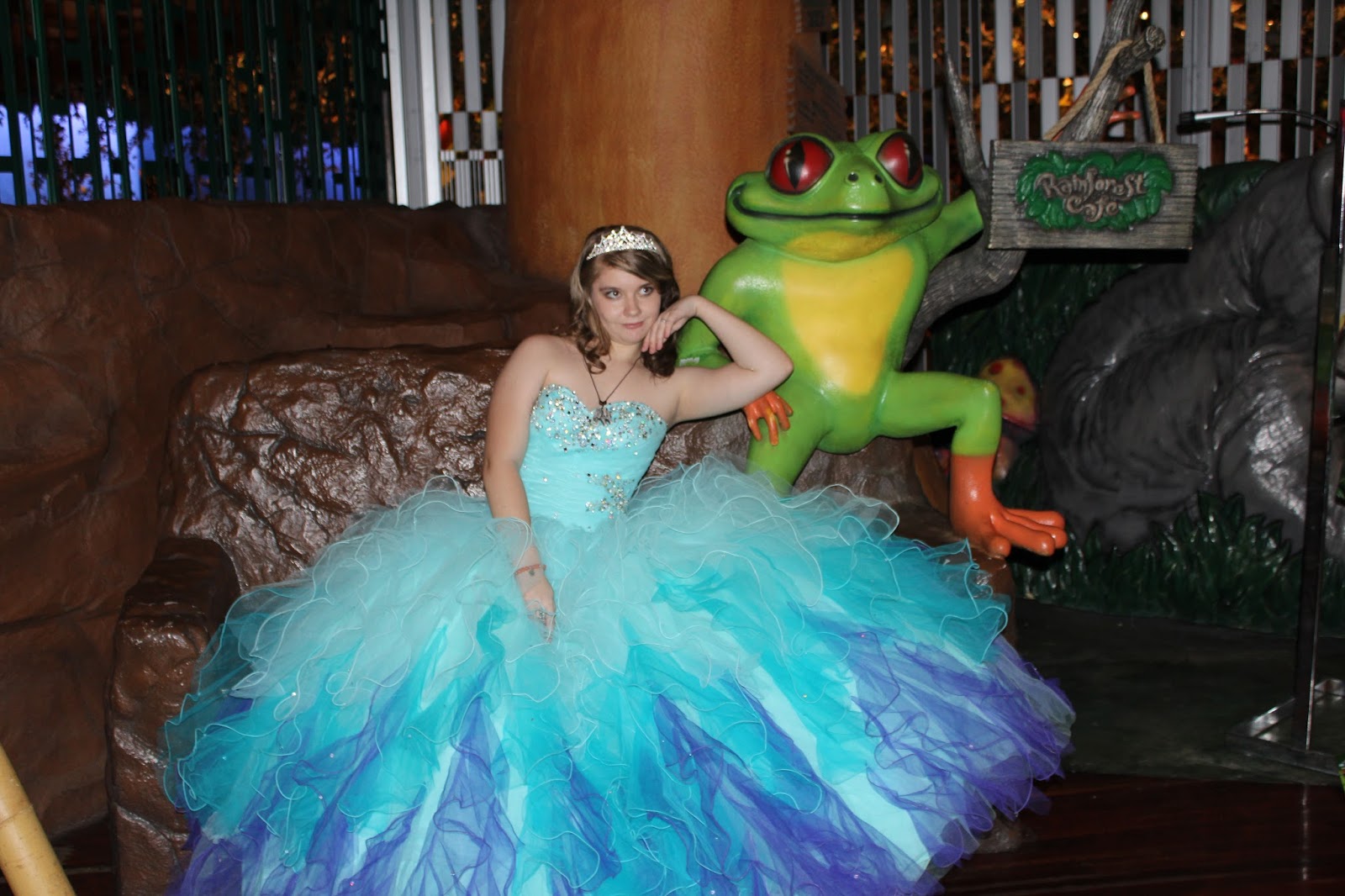 I did however try to make it as special as I could. I was able to get her a special dress (not new of course but gorgeous), we had a photo shoot, and then we went to Rainforest Cafe for her Birthday Dinner with family. It was nice and she got to feel like a princess a little. One of the things she want’s to do is work at Disney as one of the Princess’ because she love’s to make little kid’s happy.