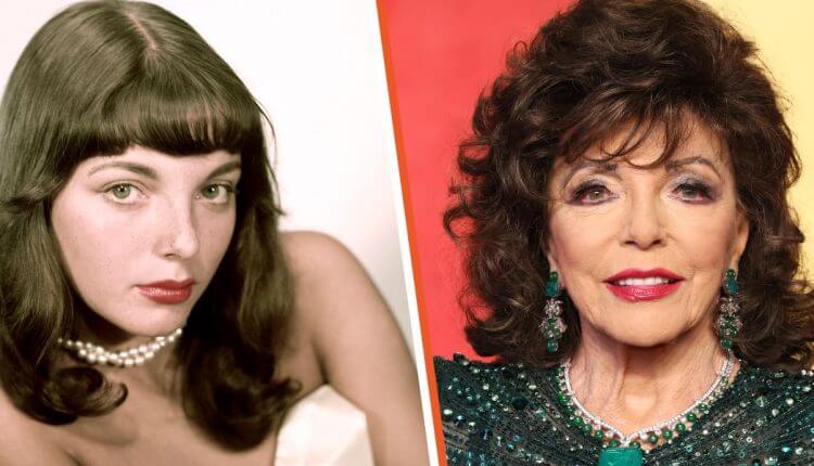 Joan Collins in her younger years and her now. | Source: Getty Images