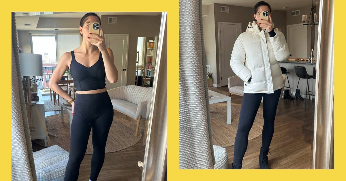 I’ve never had the pleasure of living somewhere warm, so I’ve subsequently mastered the art of staying cozy. My go-to for braving Midwest winters is the Aritzia Super Puff, which I almost always pair with my Bombas wool calf socks, and trusty Timberland boots. While I previously thought I had the whole equation figured out, I recently got wind of a genius innovation I wish I had known about sooner: fleece-lined leggings.