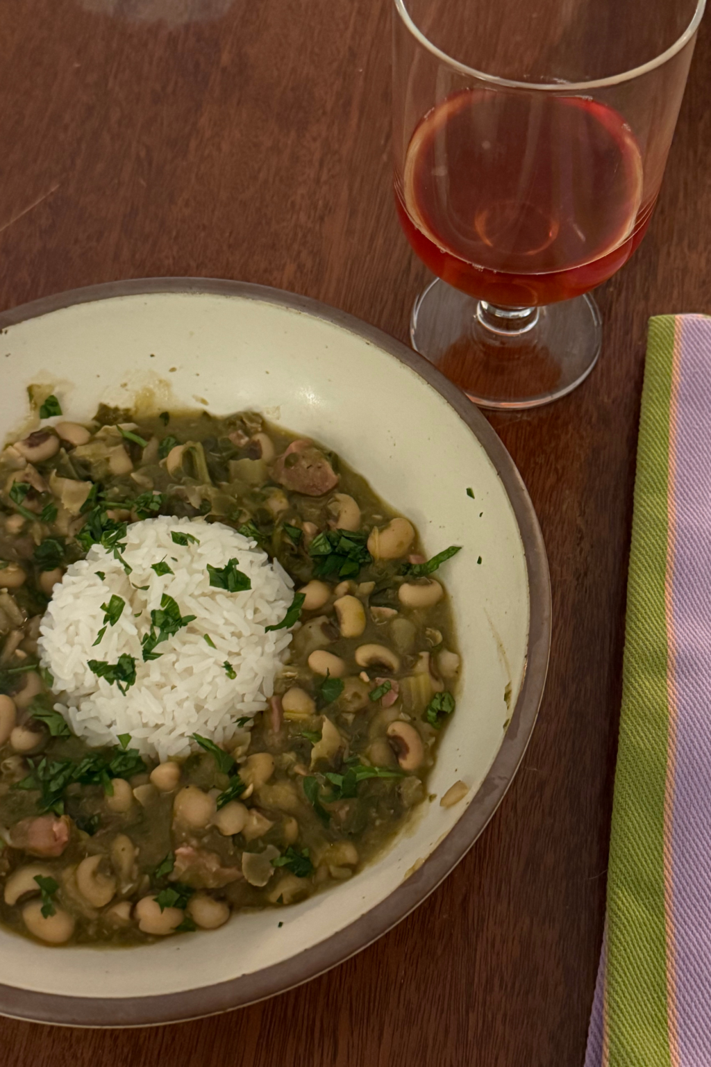 I’m almost embarrassed to admit that after ten years of living in Charleston, I’d somehow never had a proper Hoppin’ John New Year’s Day dinner. I’d fully written it off as bland and mildly uninspiring, which, in hindsight, feels deeply unfair. One bite in and I was happily eating my words. My friends Abby and Jude are two of the best hosts I know, the kind who make an evening feel instantly cozy and unforced, anchored by a hearty meal and a very respectable glass of wine.