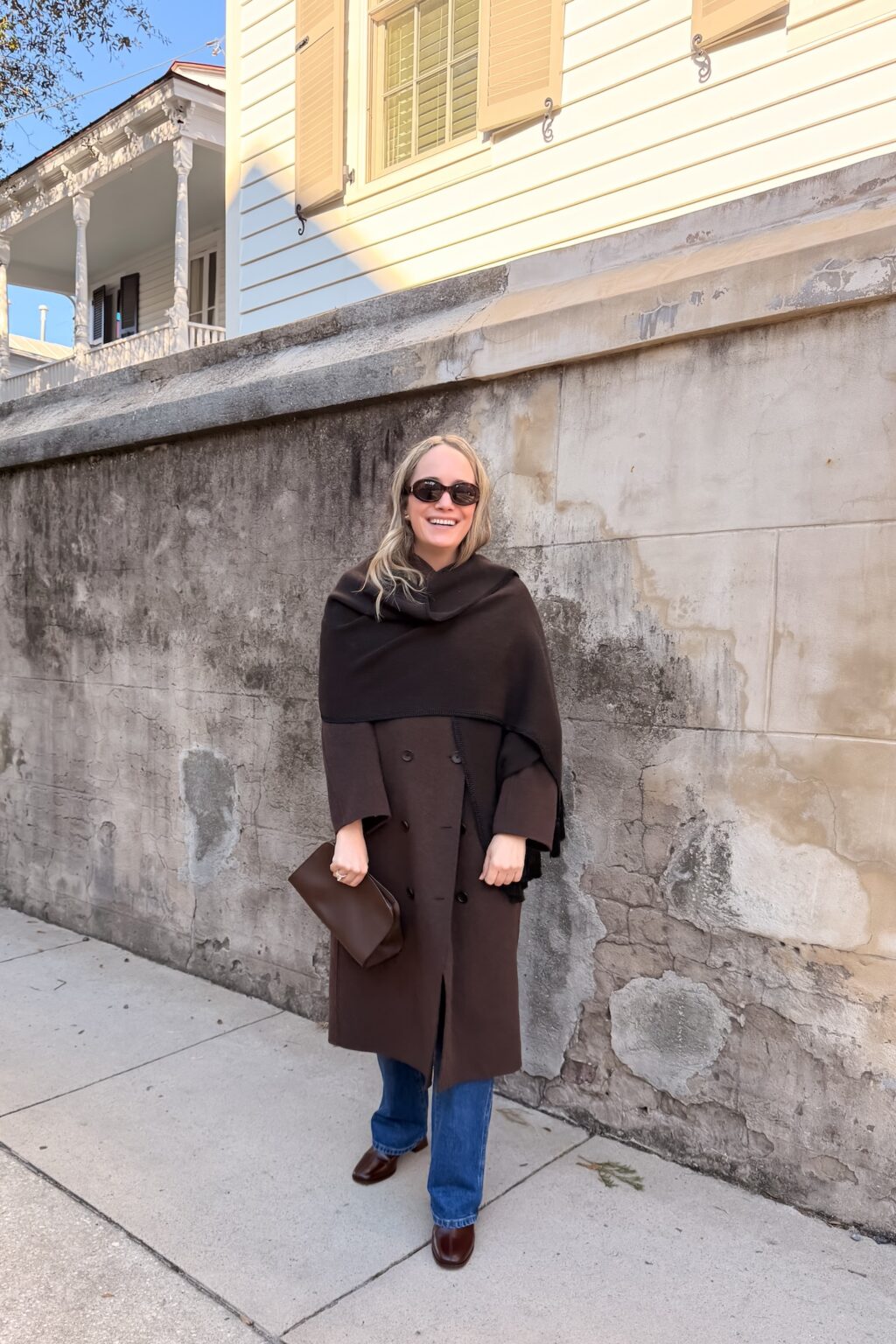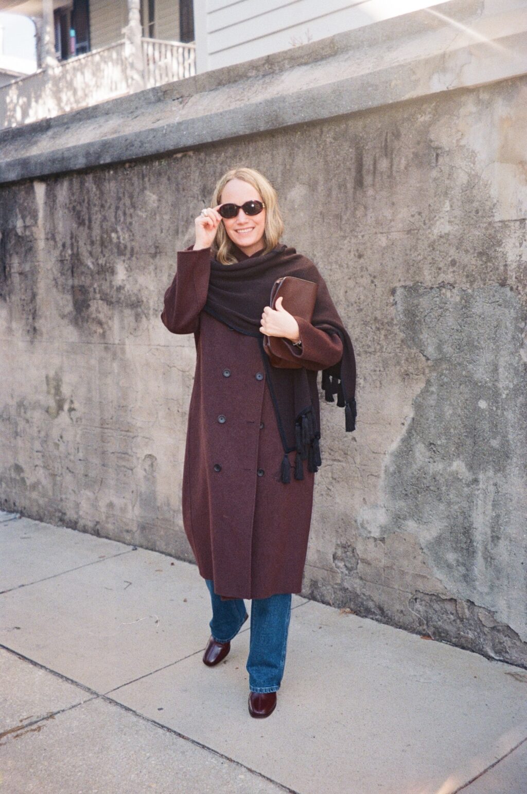 Chocolate brown has been a trend (can we really even call it that, though? It’s a classic!) for a while now, but I’ve found myself really leaning into it this year. Brown still feels dark and moody, perfect for winter (but with a little more warmth than black or navy). It pairs beautifully with other neutrals (black, navy, camel, and grey all look great) and even brights like chartreuse (more on that here). Lately, I’ve been leaning into chocolate on chocolate . . . a more monochromatic vibe that layers different textures. Think suede, leather, wool, and maybe something silky. Mixing and matching different materials in the same color feels very chic to me. You can see more of that in this reel too!