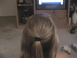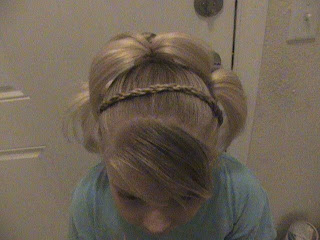 This is a pretty easy style and I think it comes out looking very cute! What I did was put some gel through out the hair and then make a single pony for the top part of the hair. Don’t start by the ears though, start closer to about eye level if that makes sense. Secure with an elastic.