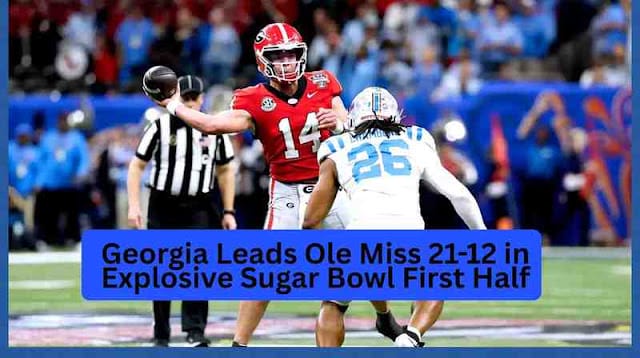 Georgia leads Ole Miss 21-12 at halftime in the Sugar Bowl after a dominant performance in the second quarter.