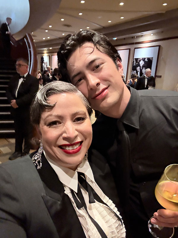 Eating pizza at a high-top table next to Jacob Elordi (yes, really). Being in the presence of Best Supporting Best Actress nominee Wunmi Mosaku, “who I knew from the show Lovecraft Country, and I loved her in Sinners,” says Gandia. “I didn’t get to talk to her; with some of the stars, you were just happy to be breathing the same air as them.”