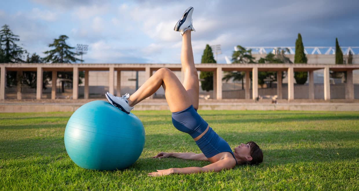 Also known as the lying hip extension, performing the exercise on a stability ball adds an additional stability element that has functional carryover into various sports, and makes the exercise more challenging.