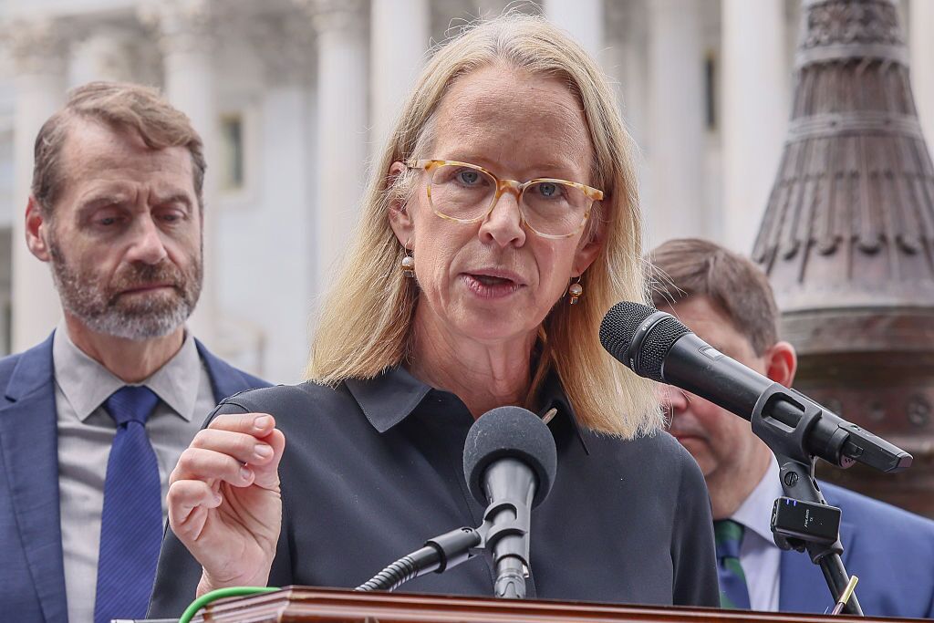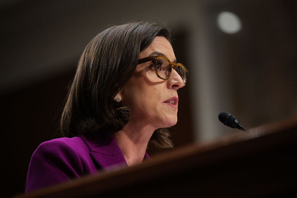 Liz Oyer, a former U.S. pardon attorney who reviewed and investigated applications for executive clemency and says she was fired for opposing restoration of gun rights to the actor Mel Gibson, attends a bicameral hearing on the U.S. Justice Department in the Dirksen Senate Building on April 7, 2025, in Washington, D.C. Sen. Adam Schiff (D-Calif.) and Rep. Jamie Raskin (D-Md.) questioned four lawyers who say they were pressured by the Trump administration. (Kayla Bartkowski / Getty Images)