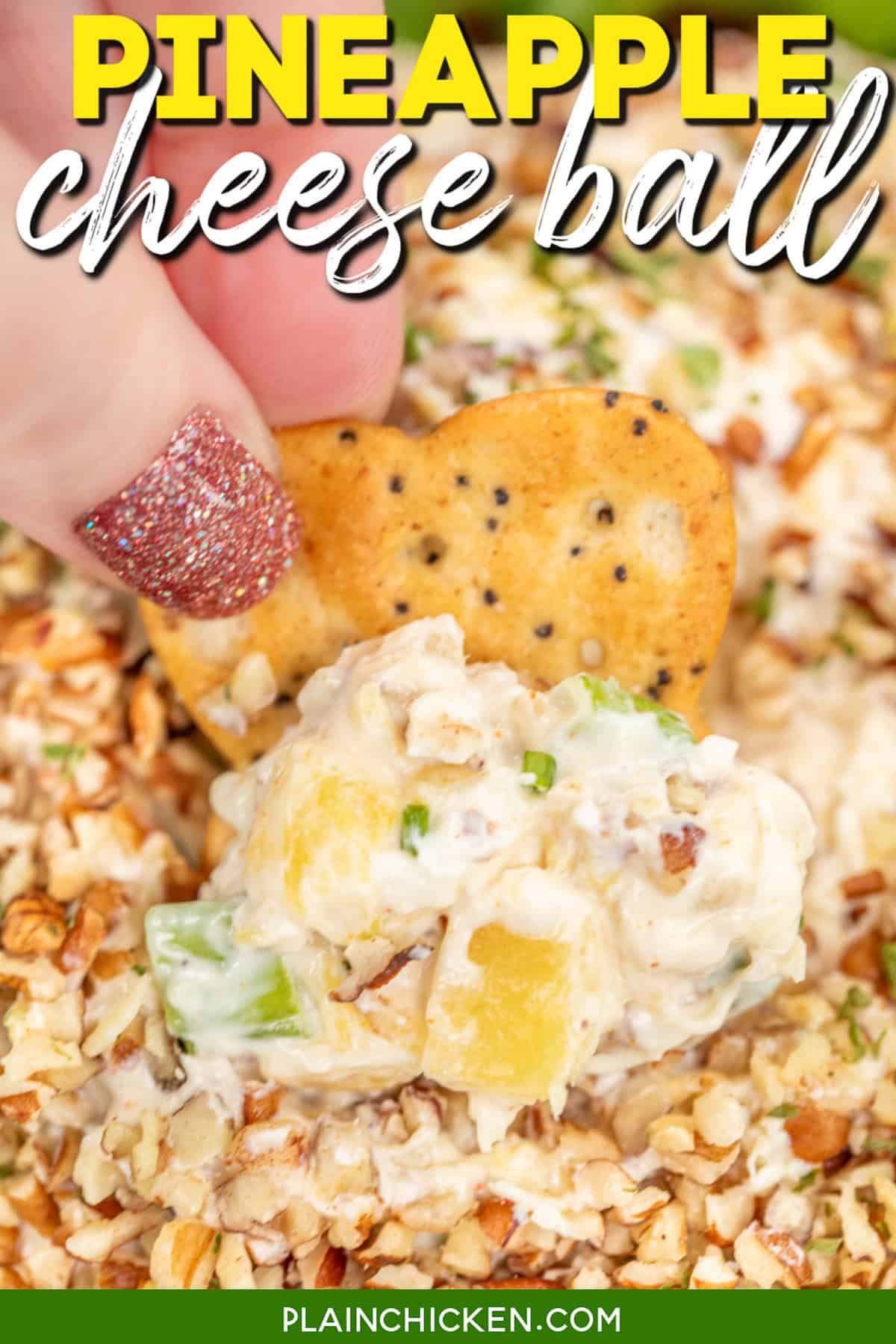Pineapple Cheese Ball Recipe – the perfect sweet and savory appetizer! Cream cheese mixed with juicy pineapple and green onions and coated in crunchy nuts makes it a party favorite. Serve with crackers, fresh veggies, or fruit for an easy and delicious crowd-pleaser!