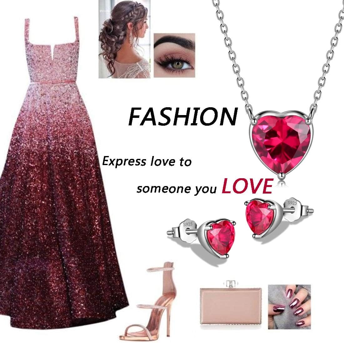 Aurora Tears Hearts Necklace Earrings Jewelry Sets – Women 925 Sterling Silver Birthstone Pendants Earrings Set Crystal Wedding Birthday Jewelry