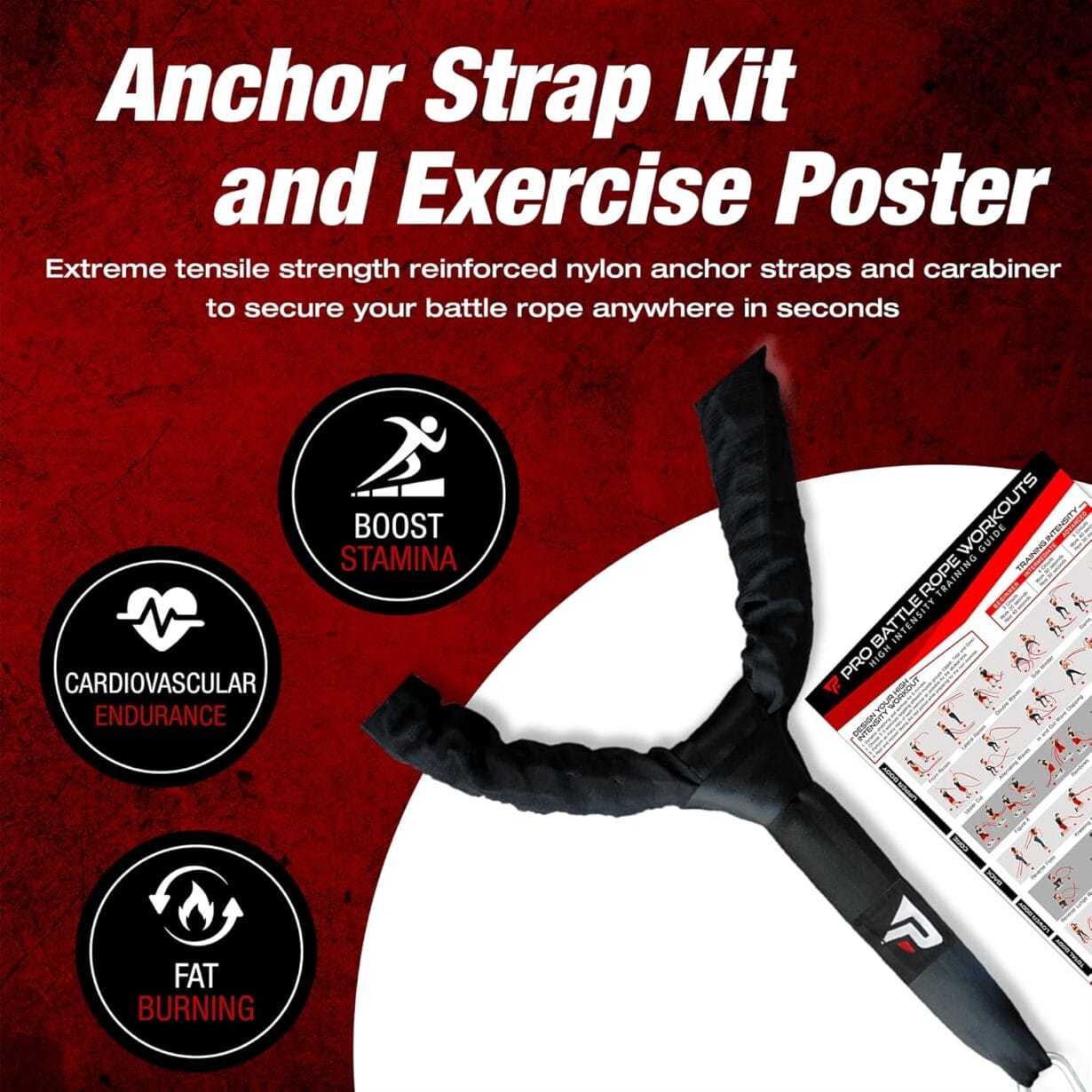 Battle Ropes 50 ft Heavy Duty Battle Rope with Protective Sleeve Black, Plastic, ABS Grip, Adult Strength Training, Cardio, CrossFit