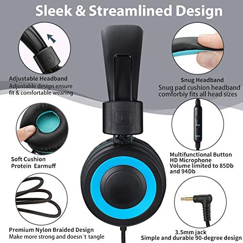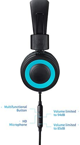 POWMEE M3 Kids Headphones with Microphone Lightweight Foldable Adjustable Stereo Bass On-Ear Headphones with 1.3 M Tangle-Free Cord for smartphons Tablets MP3/4 with 3.5mm Jack Device(Black)