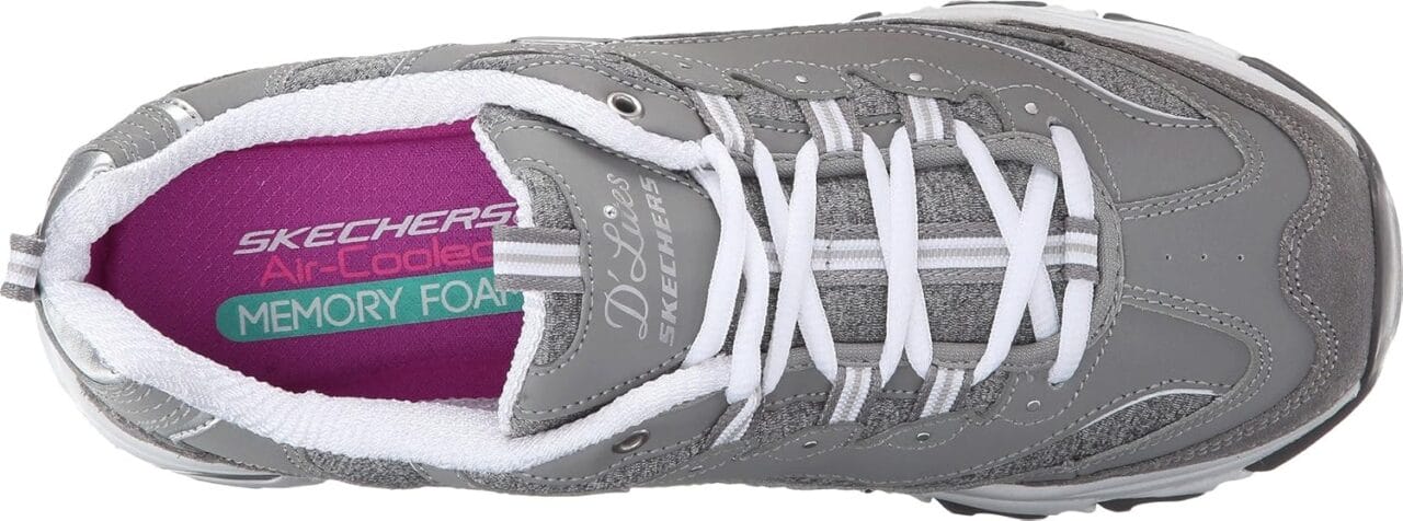 Skechers womens D’LITES ME TIME Memory Foam Lace-up Sneaker,Grey/White,7 M US