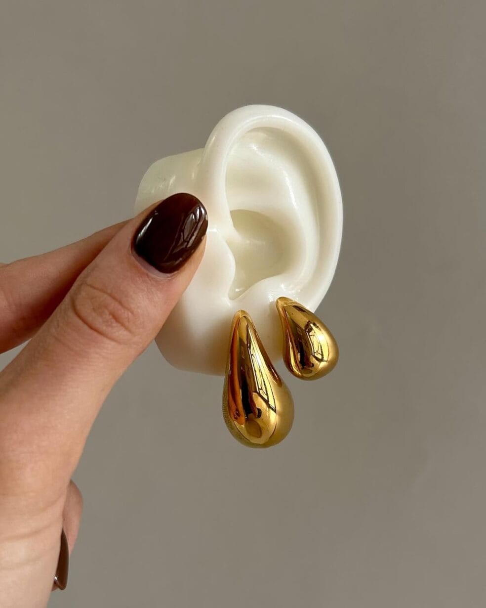 Small Teardrop Gold Chunky Earrings for Women,Thick Hoop Hypoallergenic Water Drop Earring Dupes for Women 18MM