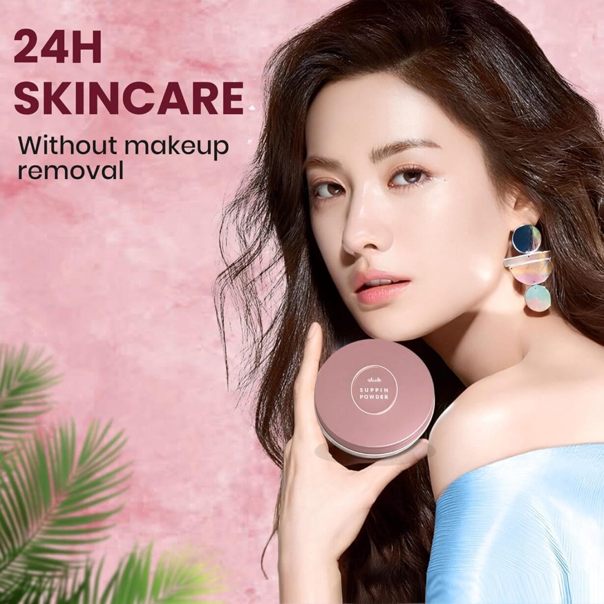 Suppin Translucent Pressed Powder Foundation + Overnight Skincare, Makeup Setting Powder & Matte Face Powder with Shea Butter, Amino Acids& Aloe Extract from Japanese Skincare PINK PLUSH