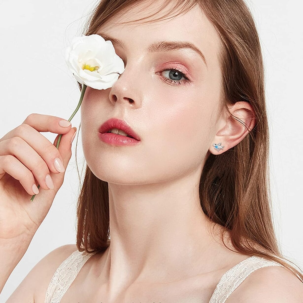 WINNICACA Sterling Silver Cute Stud Earrings Created Opal Sea Turtle/Dolphin/Dragon/Dinosaurs/Ladybug/Shark/Narwhals Animals Earrings for Women Birthday Gifts
