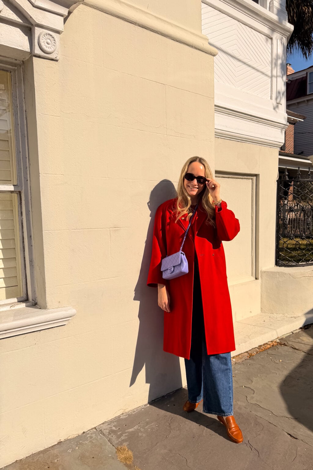Outfit Details: Loro Piana Coat (very old, found on The RealReal a few years ago), AYR jeans (the best!), Jamie Haller Loafers, Chanel Bag (borrowed from Vivrelle!)