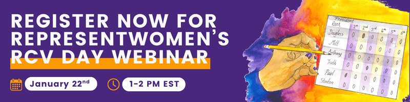 We’re also beginning the year by celebrating Ranked Choice Voting Day, which takes place annually on January 23rd. To mark the occasion, RepresentWomen is hosting a virtual RCV Day webinar on Thursday, Jan. 22, from 1-2 p.m. EST, bringing together women leaders on the front lines of the ranked choice voting movement and spotlighting how this reform is taking root in communities across the country. You can register for this upcoming event here