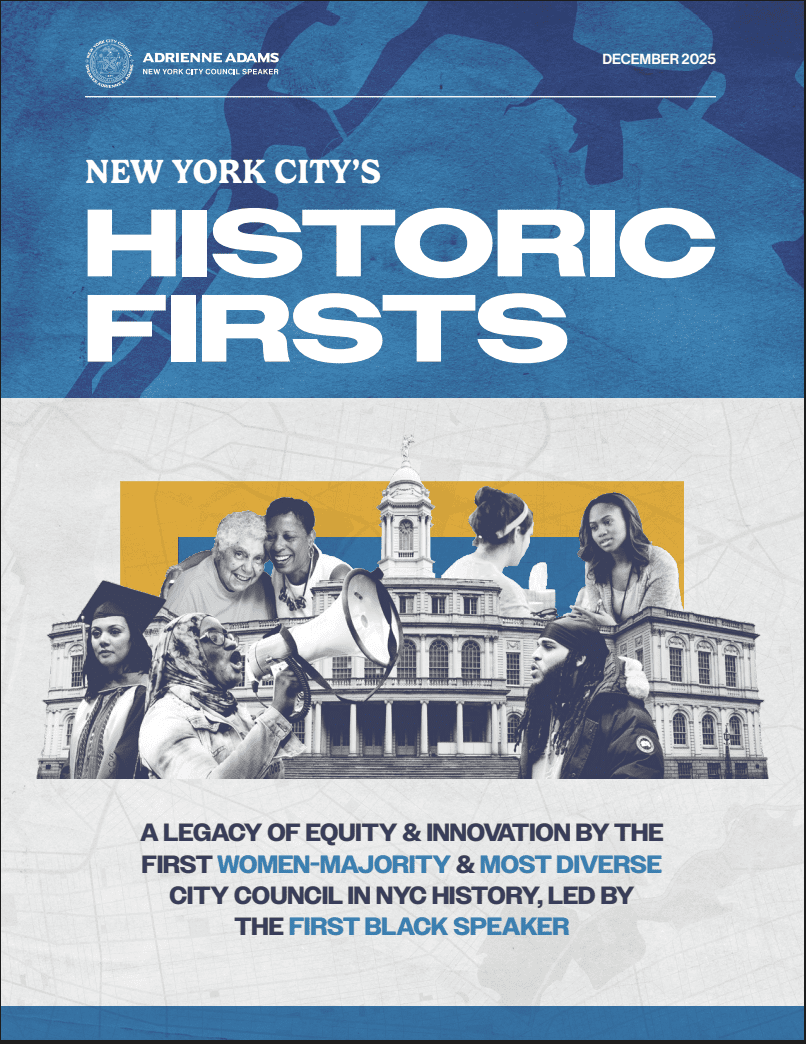 Last month, the New York City Council released Historic Firsts, a reflection on the legislative and governance achievements of the city’s first-ever women-majority council. Framed in the words of outgoing Speaker Adrienne Adams—the first Black Council Speaker in New York City’s history—the report offers a rare and candid account of what changes when representation reaches governing power, not just symbolic presence.