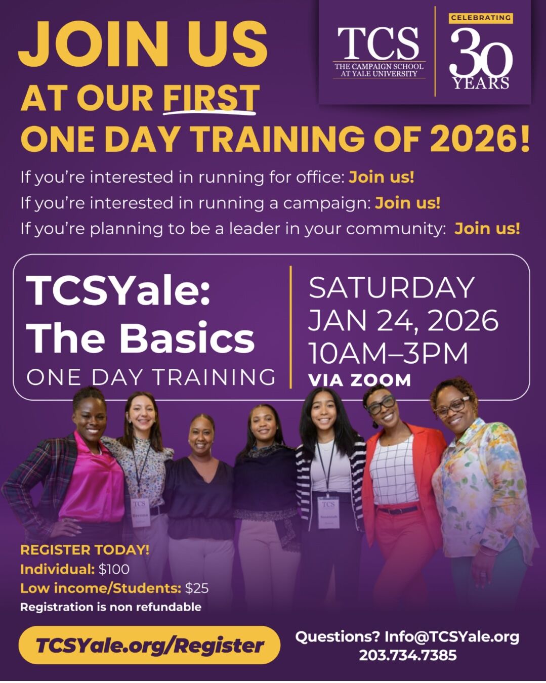 If you’re thinking about running for office, managing a campaign, or stepping more fully into leadership in your community, we want to share an opportunity we believe in. The Campaign School at Yale University is hosting its first one-day training of 2026—TSCYale: The Basics—on Saturday, Jan. 14, from 10 a.m. to 3 p.m. ET (via Zoom). It’s an accessible, practical introduction to the fundamentals of running and winning, led by experienced women in politics. You can learn more and register for the event here.