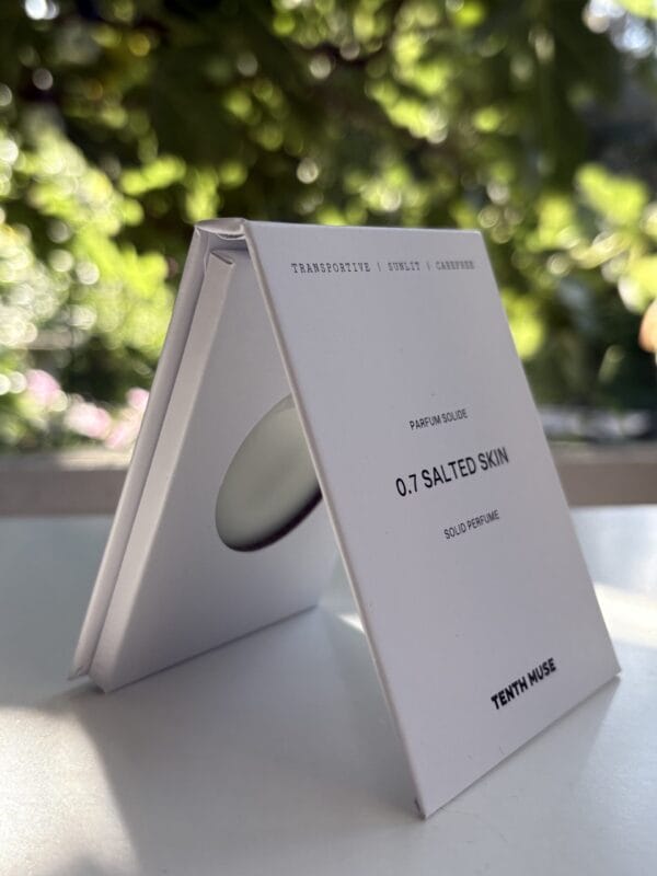 The perfume balm is light on the skin – there’s no residue or stickiness – so once it’s on you are very much unaware of any texture at all. The fragrance I chose, 0.7 Salted Skin, is a blend of sea salt, green tea and coconut. There are some woody middle notes and a base of amber and jasmine and if all this sounds a lot, it really isn’t.